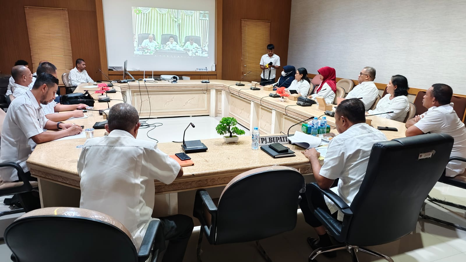 Penjabat Bupati Maluku Tengah (Dr. Rakib Sahubawa, S.Pi, M.Si), mengikuti Vidcon Rapat Koordinasi pengendalian inflasi yang di pimpin langsung oleh Penjabat Gubernur Maluku